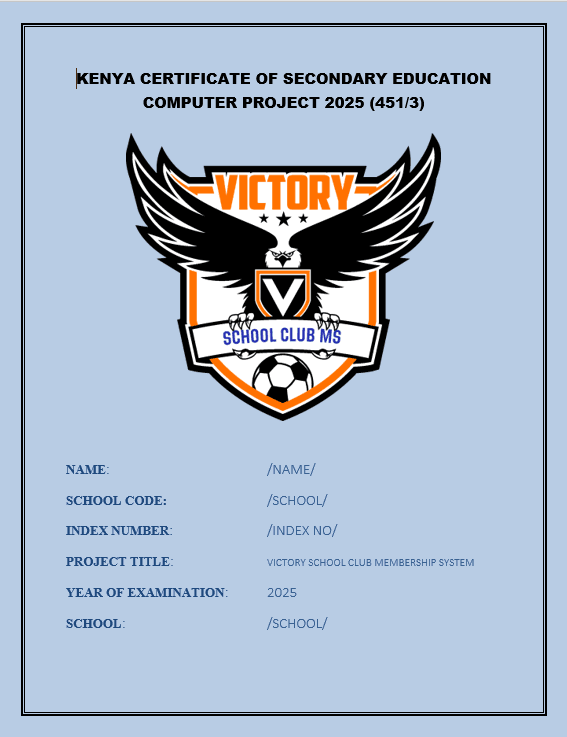 37 thoughts on “KCSE Computer Project 2025 – Victory School Club Membership System”